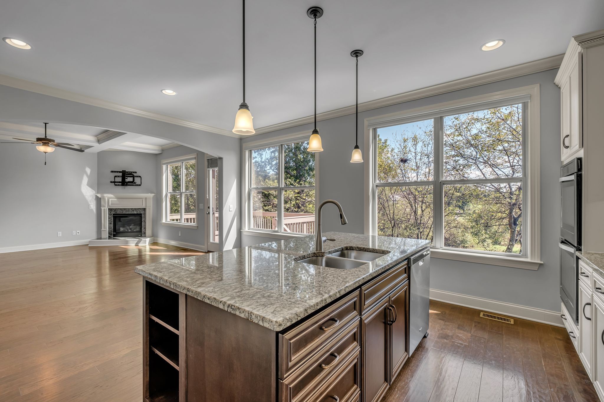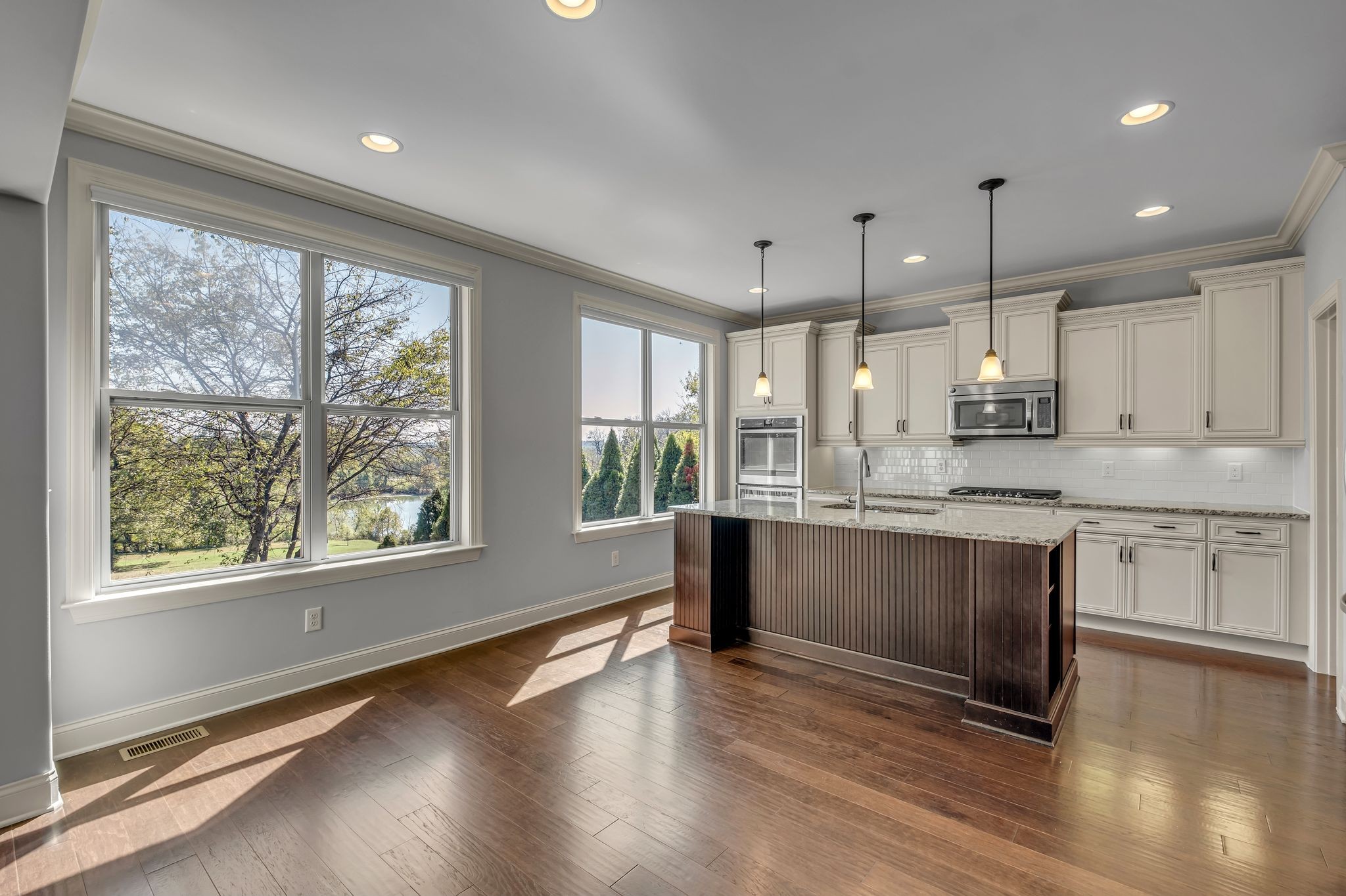 Step outside onto the deck and take in the serene view of the pond. Neighborhood trails wind through