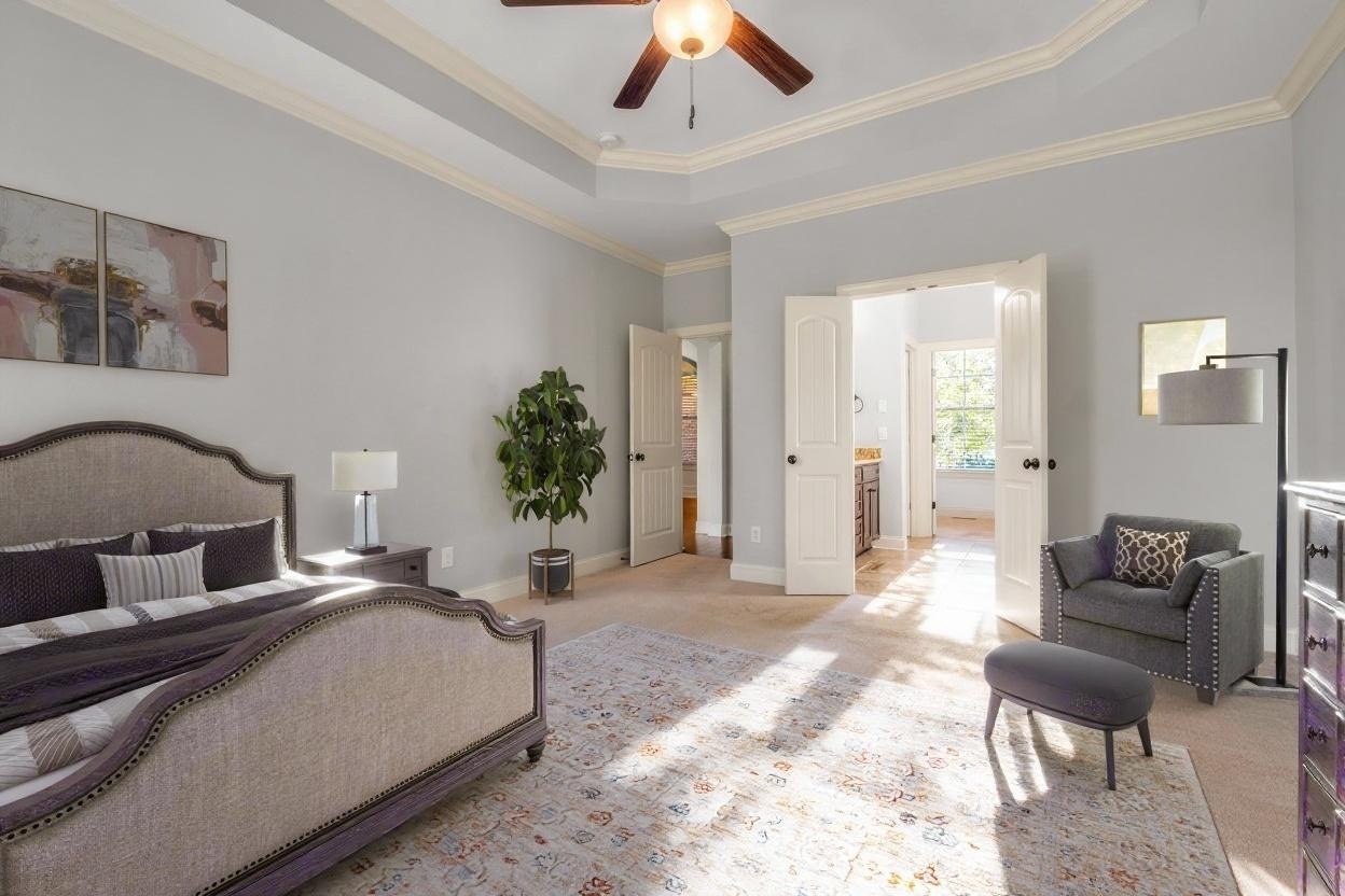 with the primary suite conveniently located on the main floor. Upstairs, you’ll find three spacious